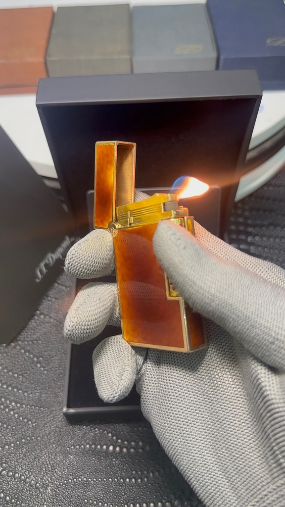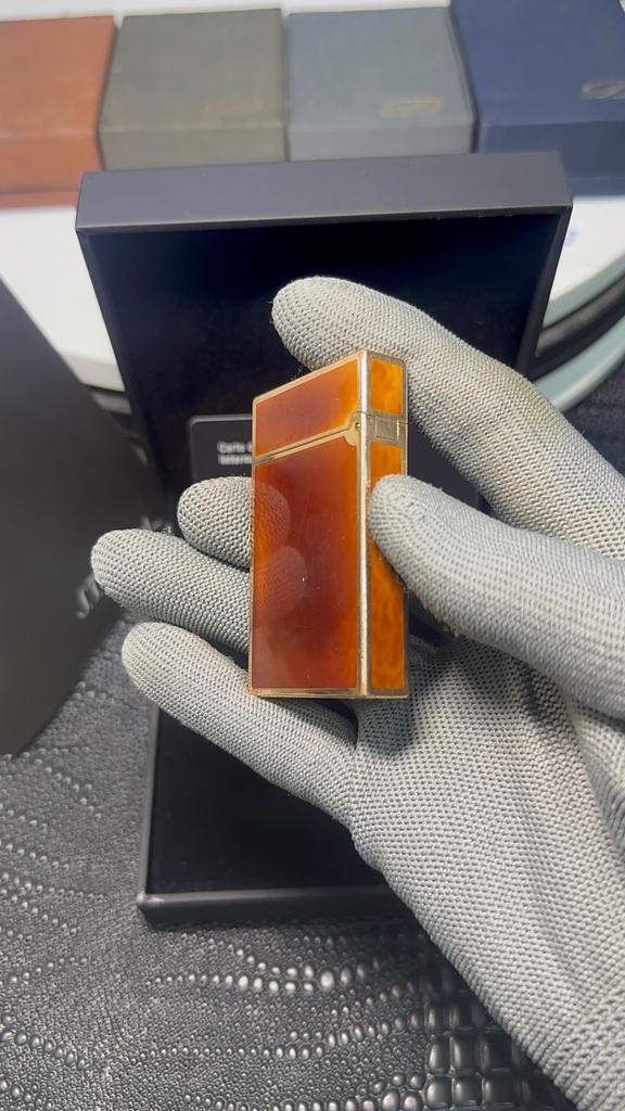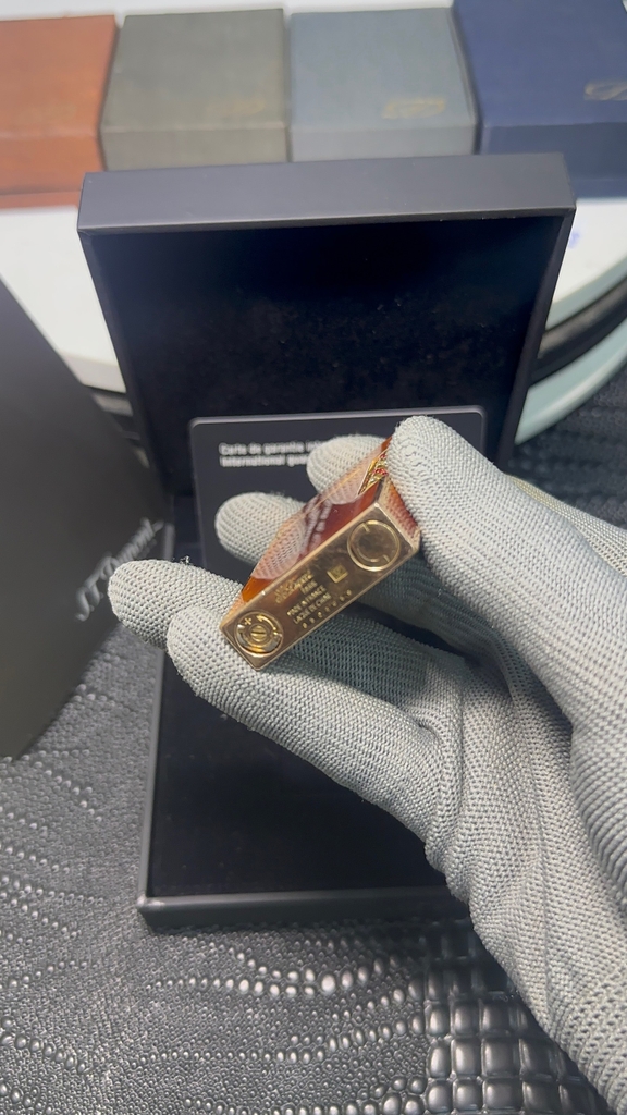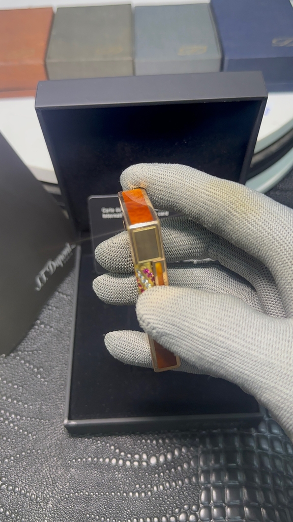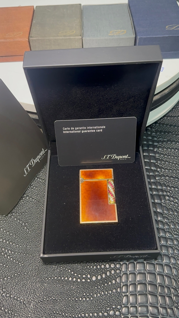 S.T. Dupont ligne 2 cao, viền vàng thân men cánh gián, rulo đính đá quý, QSD tình trạng rất mới